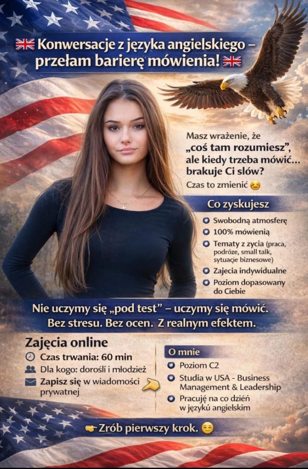 Hello future student! 👋 Tak w skrócie: Jestem korepetytorem języka angielskiego i pomagam: ✔️ poprawić oceny ✔️ przygotować się do sprawdzianów, egzaminów i matury ✔️ przełamać barierę mówie . . .