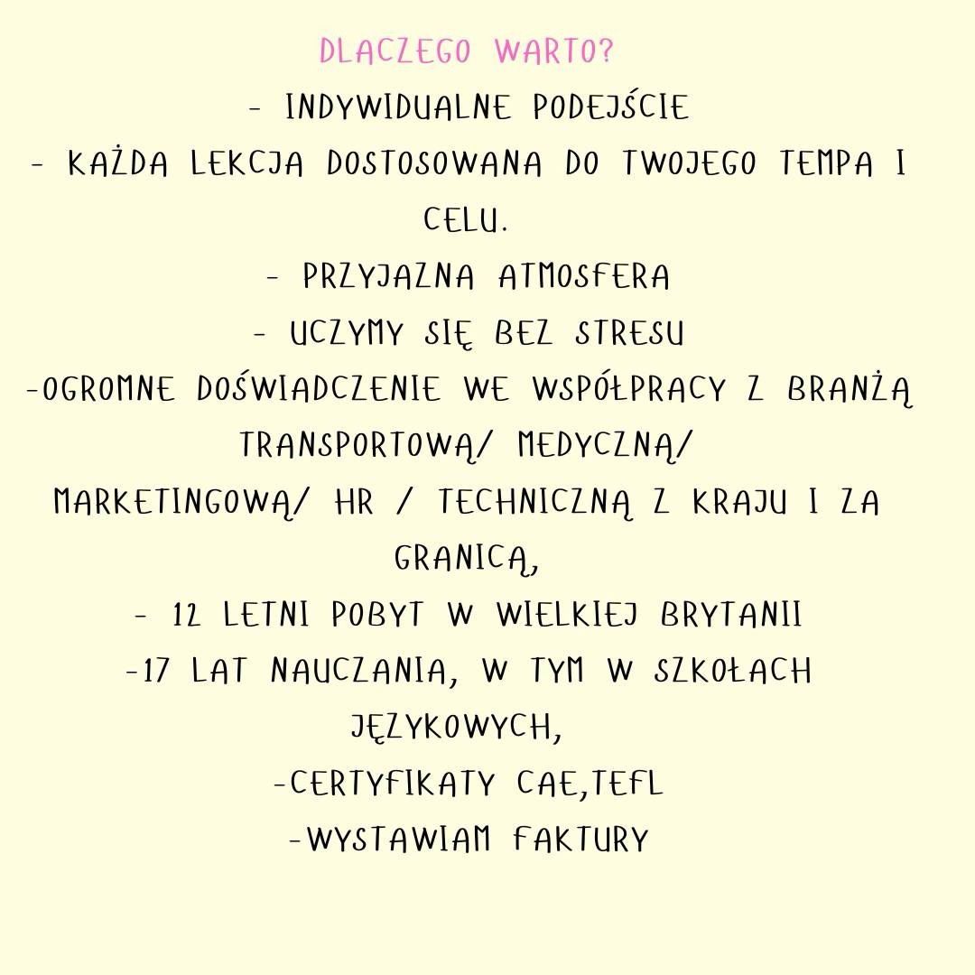 Uczę angielskiego, który daje głos. Nie tylko słówka i czasy — uczę, jak myśleć, działać i stawiać granice. Bo błędy są okej. Asertywność to siła. I każdy z nas jest 1 of a kind. Na moich za . . .